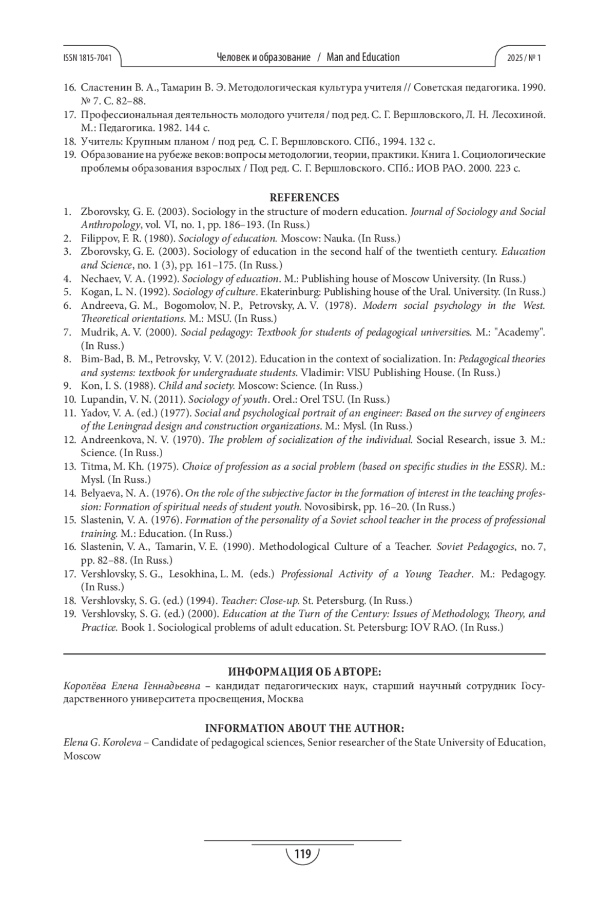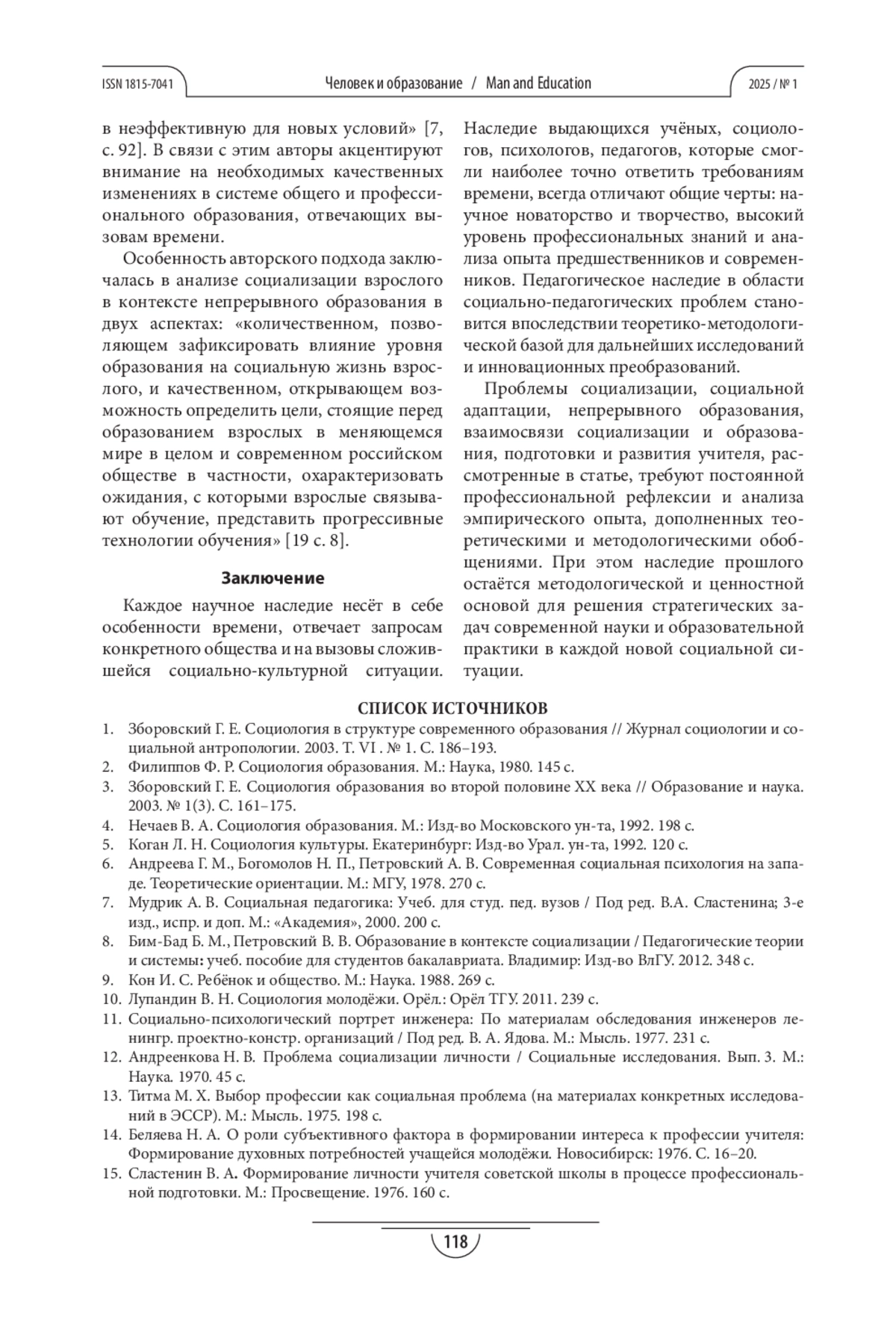 3. Зборовский Г. Е. Социология образования во второй половине ХХ века // Образование и наука. 2003. № 1(3). С. 161-175.