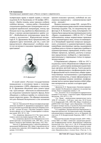 27. Таточенко В. В. Вклад популяризатора юридических знаний Н. П. Дружинина в гражданско-правовое воспитание населения Ярославской губернии в конце XIX начале XX века // Вестник Северного (Арктического) федер. ун-та. Серия: Гуманитарные и социальные науки. 2011. № 3. С. 39-42. EDN: NWHIXL