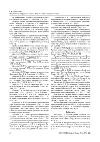 21. Сазонникова Е. В. Обязательные постановления губернатора Воронежской губернии, опубликованные в “Памятных книжках Воронежской губернии” (1913-1916) // Журнал юридической антропологии и конфликтологии. 2023. № 1. С. 53-60. EDN: XYQNIH