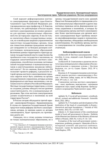 3. Кокотов А. Н. Совершенствование конституционной модели местного самоуправления в России // Вестник Сибир. юрид. ин-та МВД России. 2020. № 4 (41). С. 116-123.