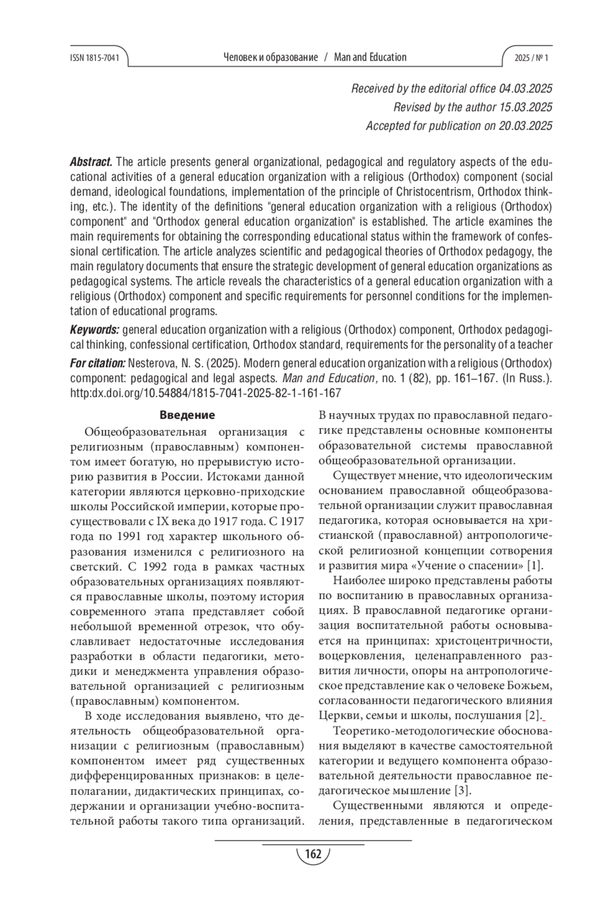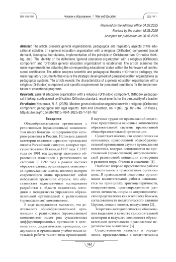 В статье представлены общие организационно-педагогические и нормативные аспекты образовательной деятельности общеобразовательной организации с религиозным (православным) компонентом (социальный запрос, идеологические основания, реализация принципа христоцентричности, православное мышление и др.). Установлена тождественность определений «общеобразовательная организация с религиозным (православным) компонентом» и «православная общеобразовательная организация». Рассмотрены основные требования к получению соответствующего образовательного статуса в рамках конфессиональной аттестации. Проанализированы научно-педагогические теории православной педагогики, основные нормативные документы, обеспечивающие стратегическое развитие общеобразовательных организаций как педагогических систем. Раскрыты характеристики общеобразовательной организации с религиозным (православным) компонентом и специфические требования к кадровым условиям реализации образовательных программ.