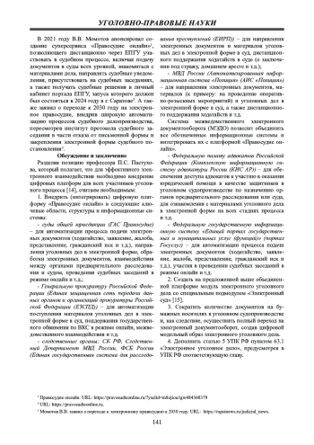 Результаты исследования: разработаны предложения по развитию цифровой системы уголовного судопроизводства, направленные на повышение прозрачности и доступности электронного правосудия.