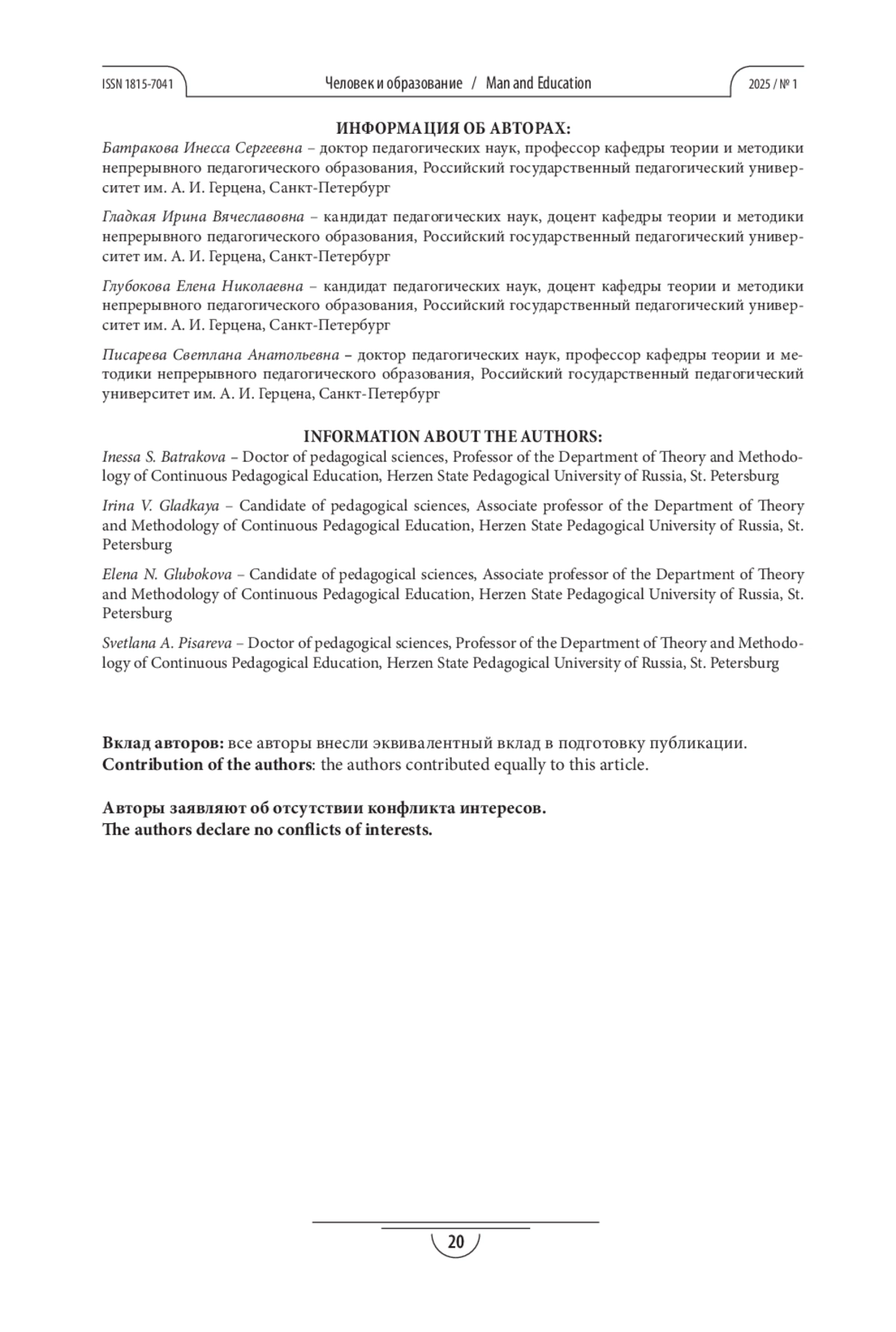 Автор (ы): Батракова Инесса Сергеевна, Гладкая Ирина Вячеславовна, Глубокова Елена Николаевна, Писарева Светлана Анатольевна