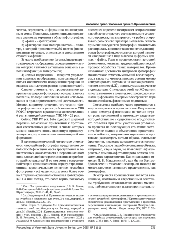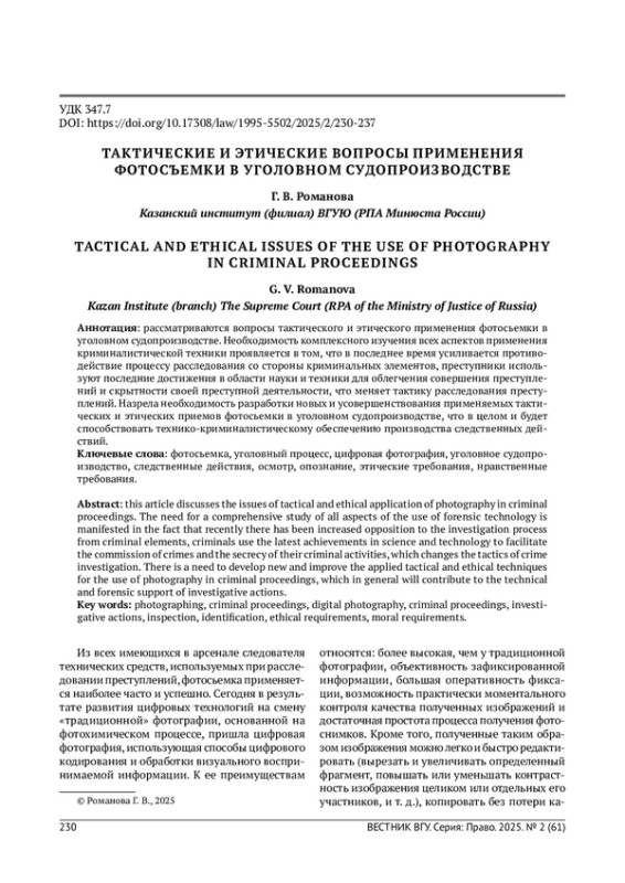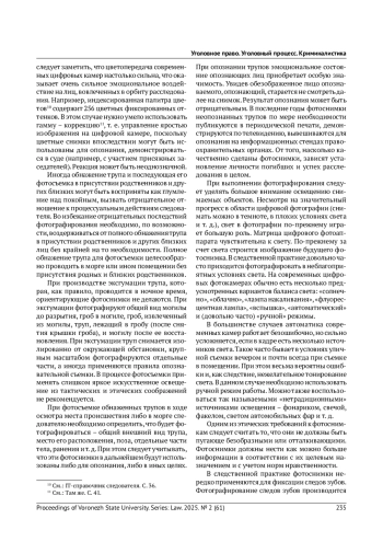 Статья: ТАКТИЧЕСКИЕ И ЭТИЧЕСКИЕ ВОПРОСЫ ПРИМЕНЕНИЯ ФОТОСЪЕМКИ В УГОЛОВНОМ СУДОПРОИЗВОДСТВЕ (2025)