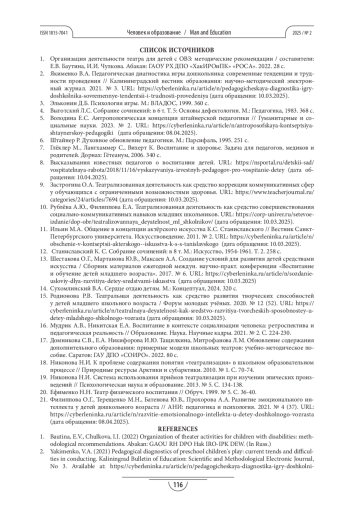 9. Застрогина О.А. Театрализованная деятельность как средство коррекции коммуникативных сфер у обучающихся с ограниченными возможностями здоровья. URL: https://www.teacherjournal.ru/categories/24/articles/7694 (дата обращения: 10.03.2025).