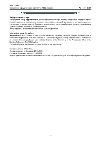 Материалы и методы: были использованы методы анализа, синтеза, дедукции и индукции. Материалами послужили нормативные правовые акты Российской Федерации, постановления Верховного Суда Российской Федерации, а также ведомственные приказы государственных органов. Обзор литературы: изучены научные труды Е. И. Галяшиной, Ж. Г. Ганеевой, А. В. Кутузова, А. Л. Осипенко.