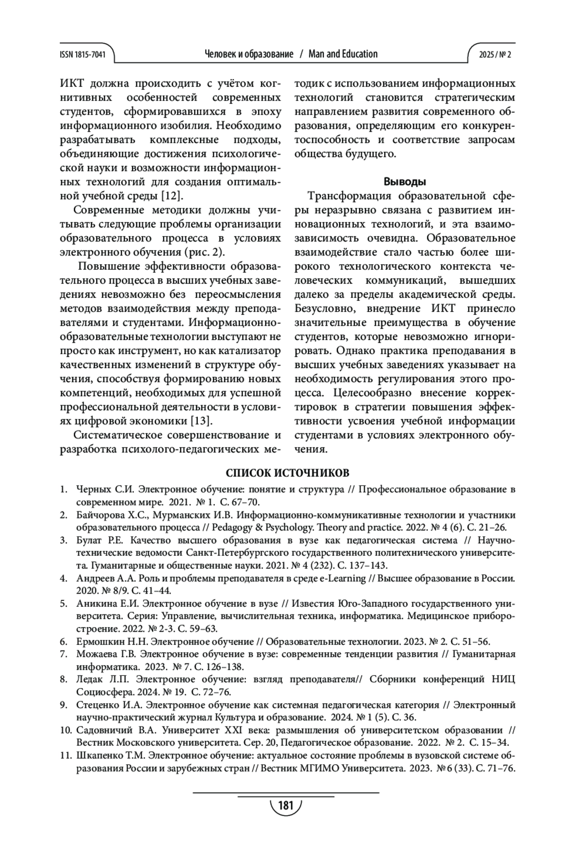 10. Садовничий В.А. Университет XXI века: размышления об университетском образовании // Вестник Московского университета. Сер. 20, Педагогическое образование. 2022. № 2. С. 15-34.
