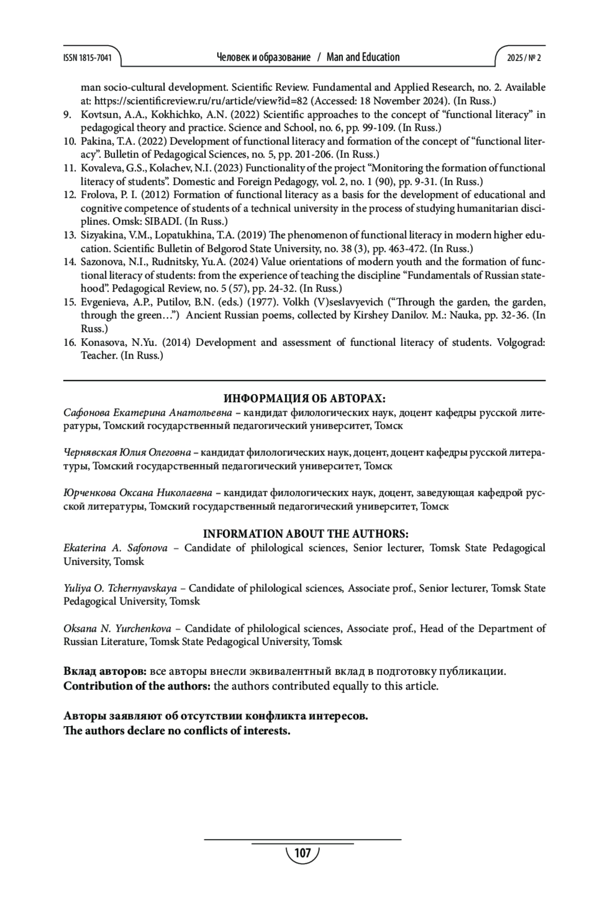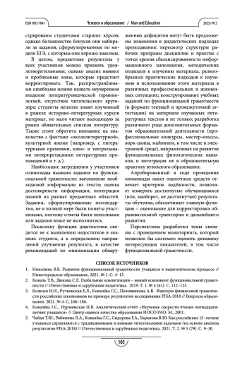 10. Пакина Т.А. Развитие функциональной грамотности и формирование понятия «функциональная грамотность» в России // Вестник педагогических наук. 2022. № 5. С. 201-206.