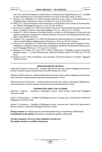 8. Саметова Ф.Т., Мырзаханова Ф.М. Функциональная грамотность как один из показателей уровня социально-культурного развития человека // Научное обозрение. Фундаментальные и прикладные исследования. 2020. № 2. URL: https://scientificreview.ru/ru/article/view?id=82 (дата обращения: 18.11.2024).