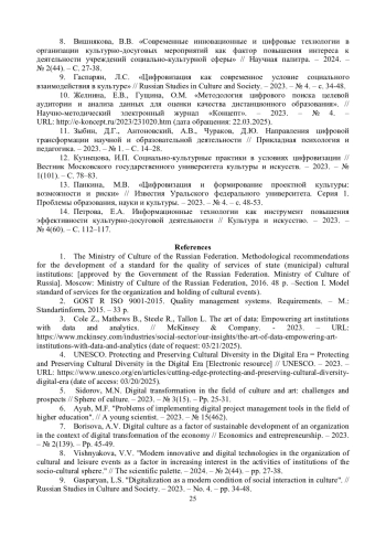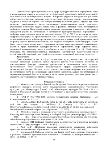Статья: ТРАНСФОРМАЦИЯ ПРОЦЕССОВ ПРОЕКТИРОВАНИЯ УСЛУГ В СФЕРЕ КУЛЬТУРНО-МАССОВЫХ МЕРОПРИЯТИЙ НА ОСНОВЕ ИНФОРМАЦИОННЫХ ТЕХНОЛОГИЙ (2025)