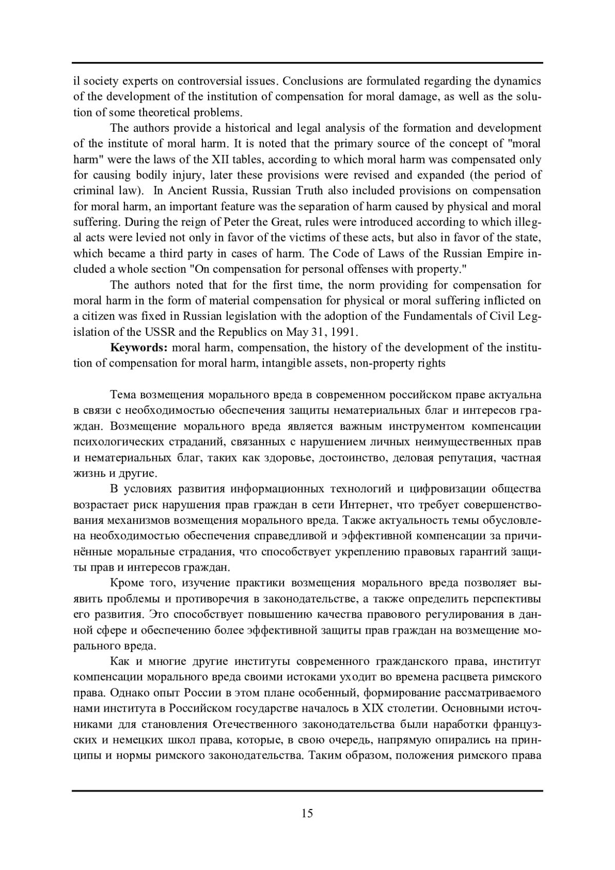 Ключевые фразы: МОРАЛЬНЫЙ ВРЕД, КОМПЕНСАЦИЯ, история развития института возмещения морального вреда, НЕМАТЕРИАЛЬНЫЕ БЛАГА, неимущественные права