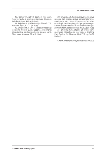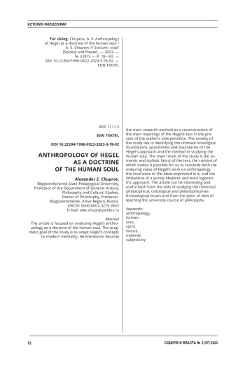 ЧУПРОВ А. С. АНТРОПОЛОГИЯ ГЕГЕЛЯ КАК УЧЕНИЕ О ДУШЕ ЧЕЛОВЕКА // СОЦИУМ И ВЛАСТЬ. 2023. № 3 (97)