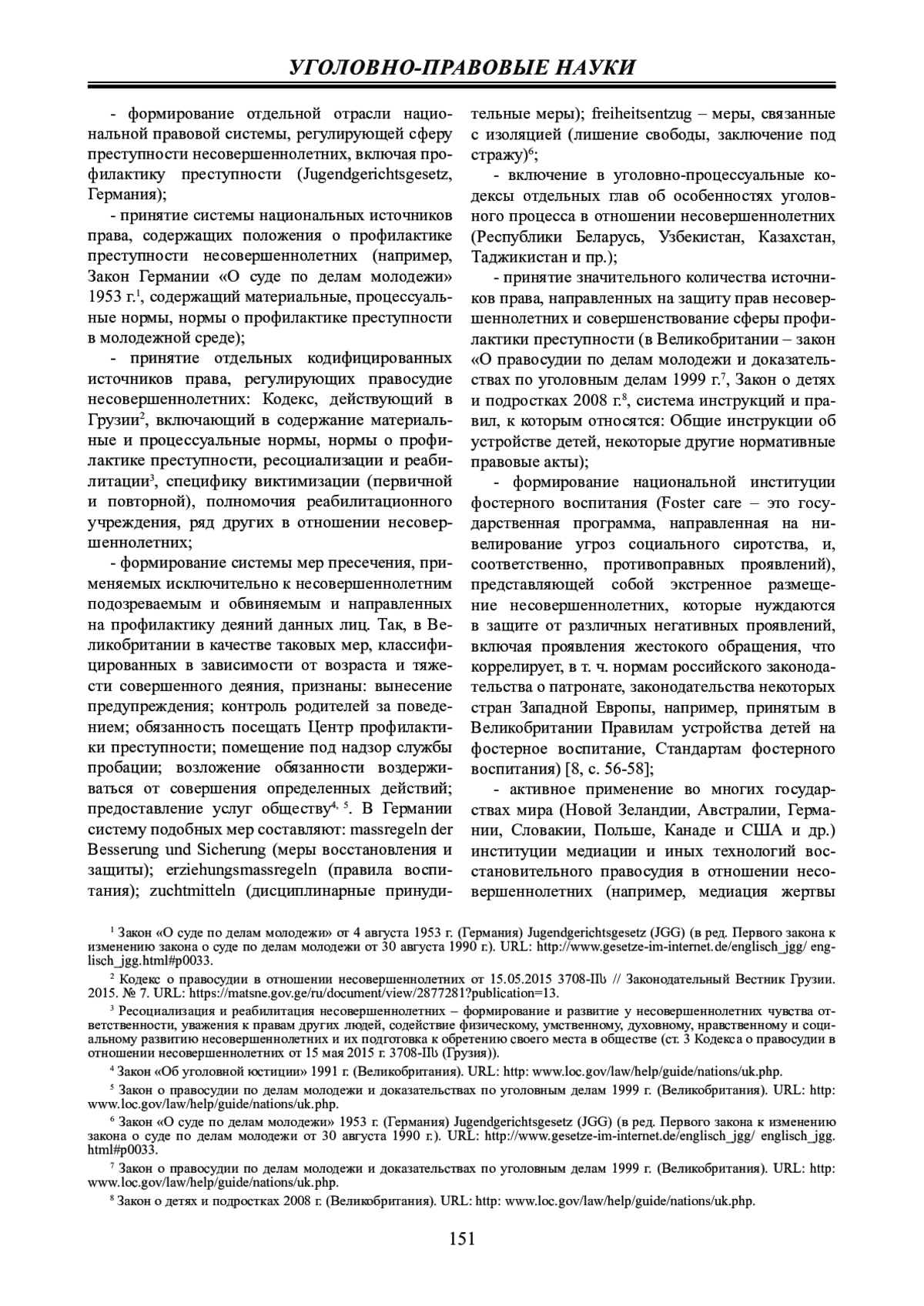 Результаты исследования: в статье отражены зарубежные аспекты профилактики преступности, тождественные российской системе профилактики и отличающиеся от нее; проанализировано российское и зарубежное законодательство; представлен криминологический опыт в области профилактики преступности; рассмотрены современное состояние, тенденции, проблемы в сфере профилактики преступности.