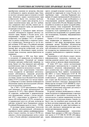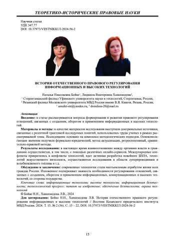 Введение: в статье рассматриваются вопросы формирования и развития правового регулирования отношений, связанных с созданием, оборотом и применением информационных и высоких технологий.