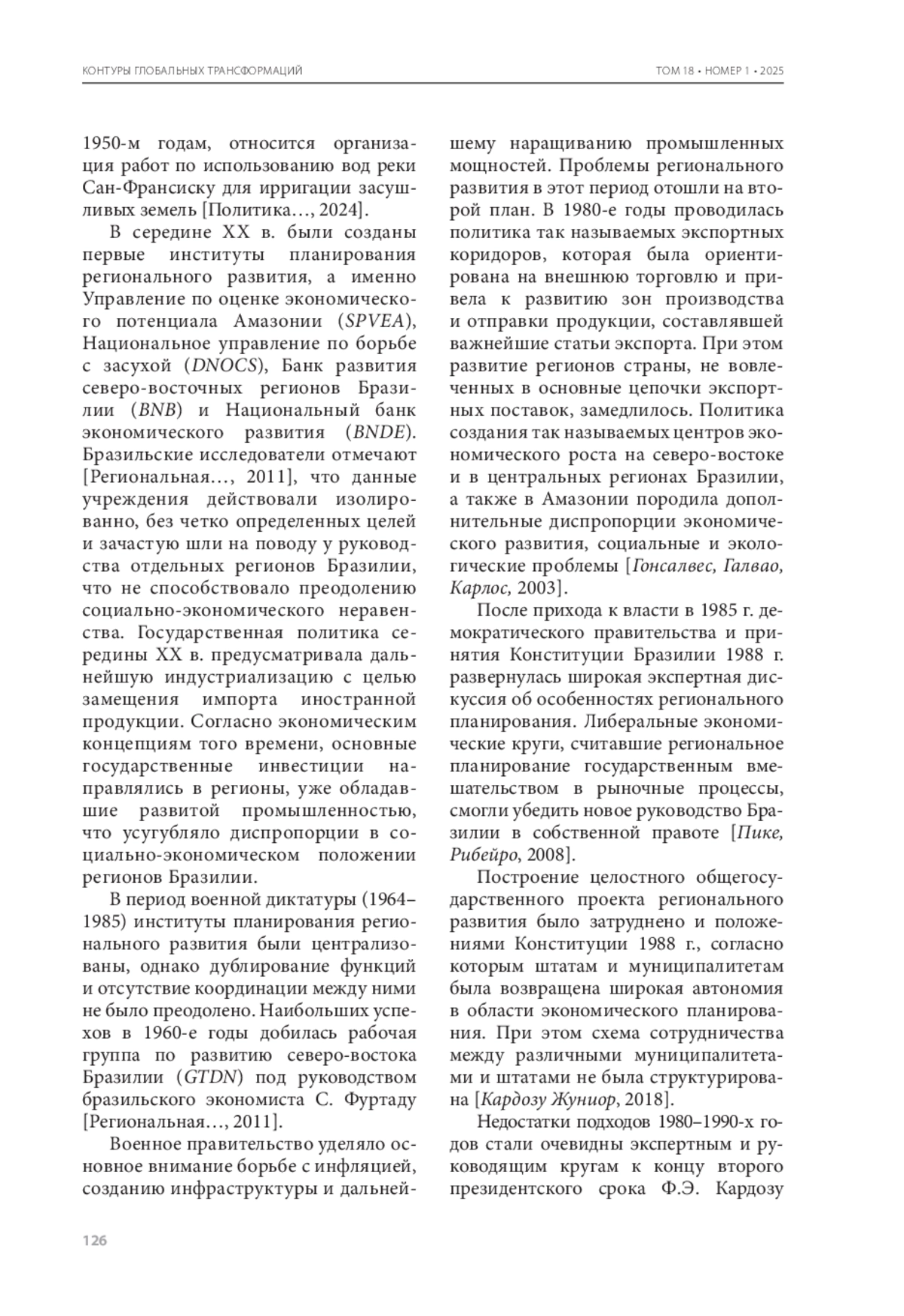 5. Алвес А., Коэльо В. Национальная политика регионального развития и ее современное состояние: стратегические программы, планы регионального развития и Национальные интеграционные маршруты = Alves A., Coêlho V. A PNDR e seu momento atual: agendas estrategicas, planos regionais de desenvolvimento e rotas de integração nacional // Desenvolvimento Regional no Brasil: Politicas, estrategias e perspectivas / Ed. por A. Monteiro Neto, L. Colombo, J. da Rocha Neto. - Brasilia : IPEA, 2023. - 404 p. - Порт. яз.