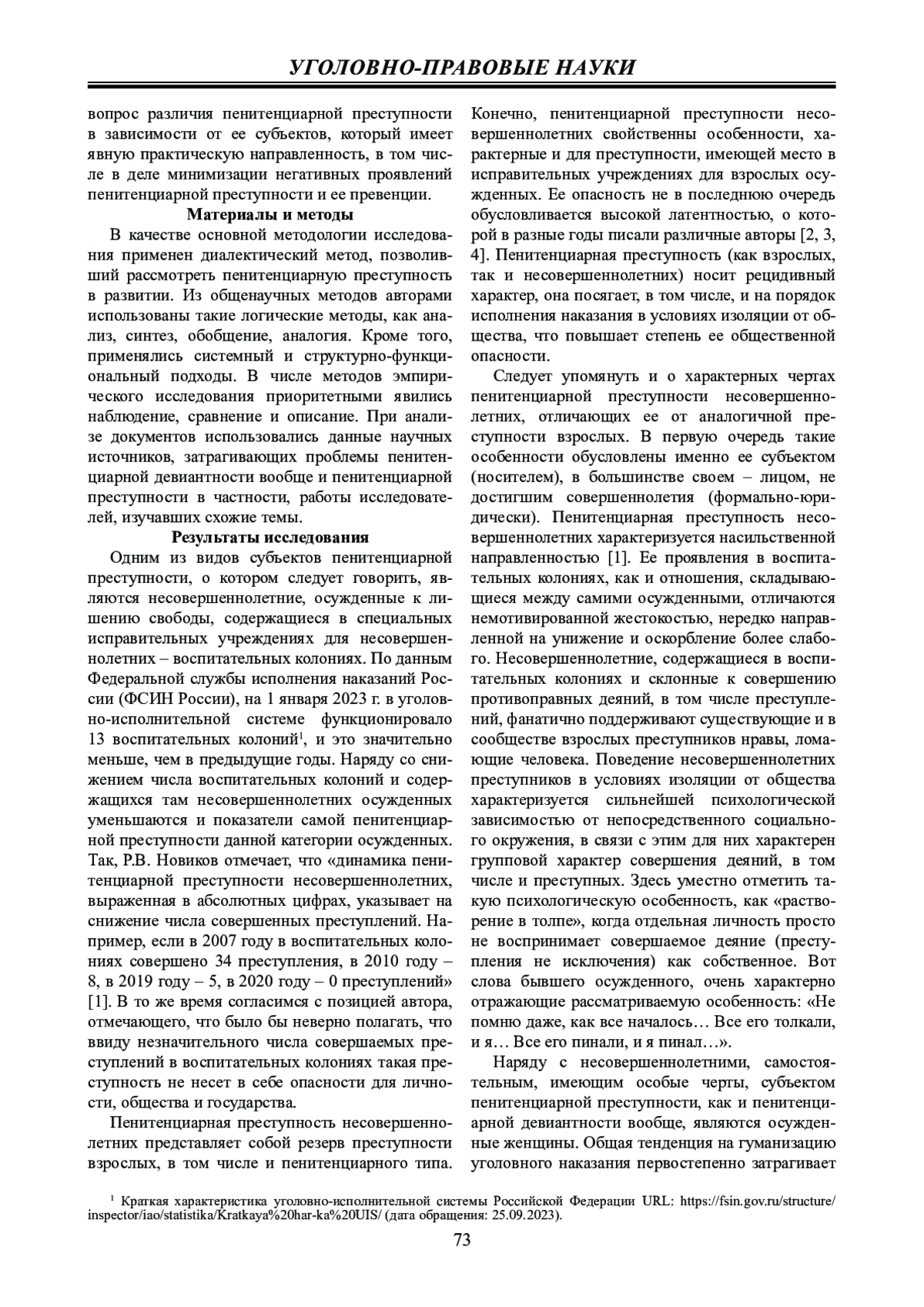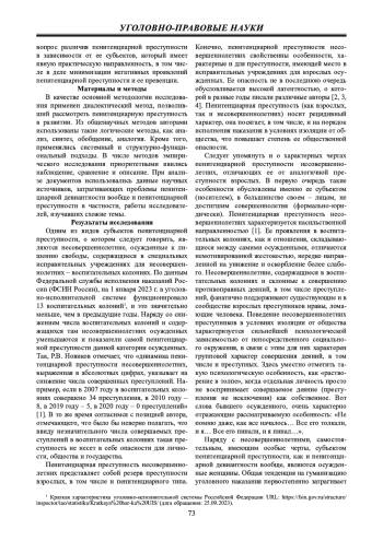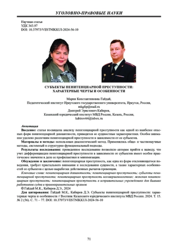 Статья: СУБЪЕКТЫ ПЕНИТЕНЦИАРНОЙ ПРЕСТУПНОСТИ: ХАРАКТЕРНЫЕ ЧЕРТЫ И ОСОБЕННОСТИ (2024)