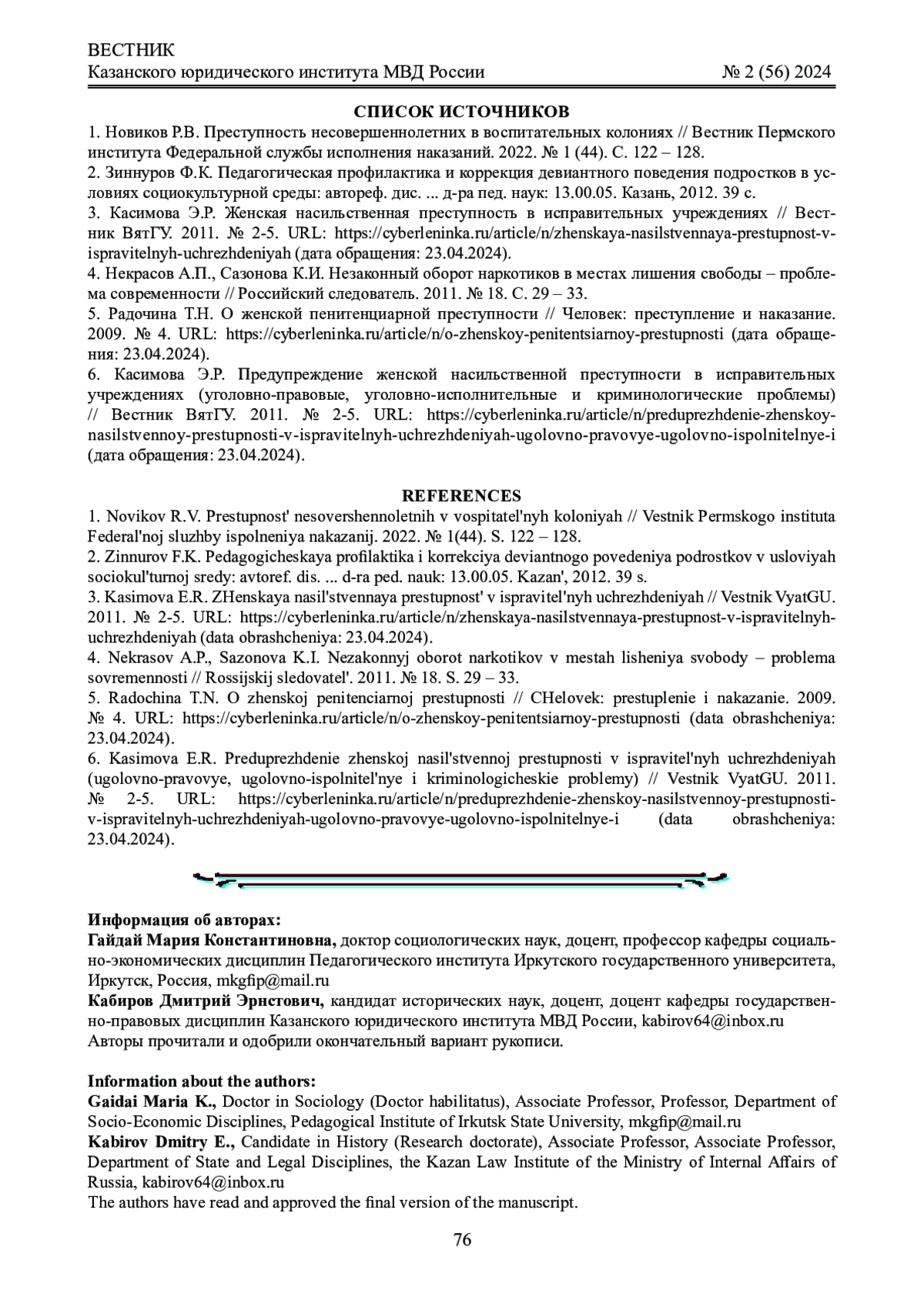 Автор (ы): ГАЙДАЙ МАРИЯ КОНСТАНТИНОВНА, КАБИРОВ ДМИТРИЙ ЭРНСТОВИЧ