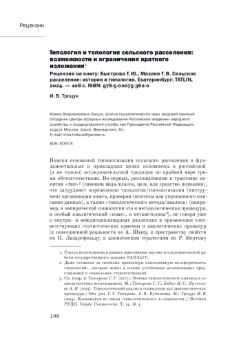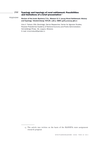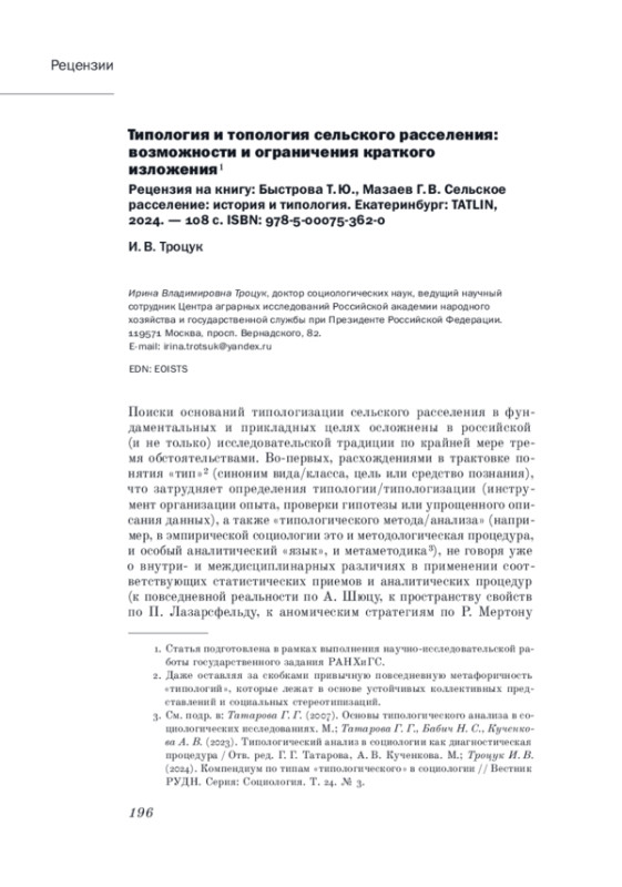 Рецензия на книгу: Быстрова Т. Ю., Мазаев Г. В. Сельское расселение: история и типология. Екатеринбург: TATLIN, 2024. - 108 с. ISBN: 978-5-00075-362-0