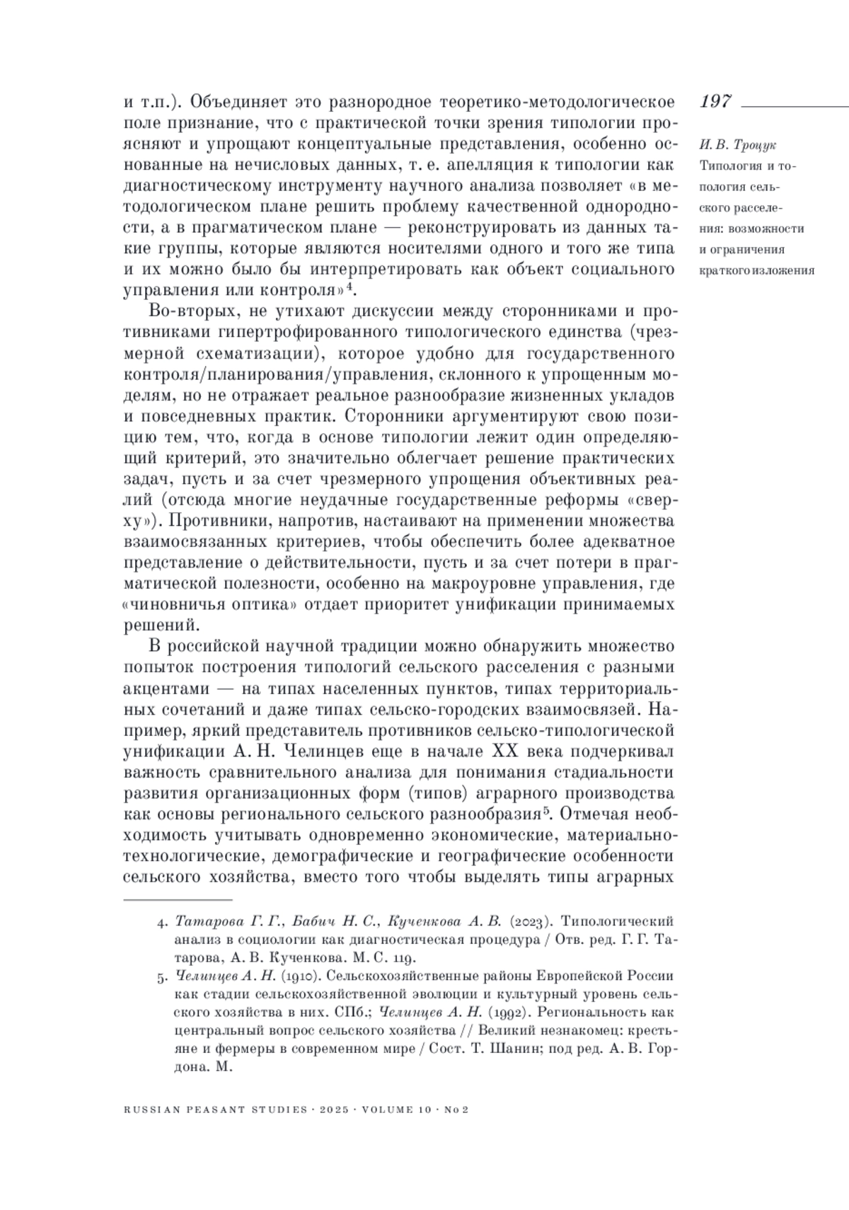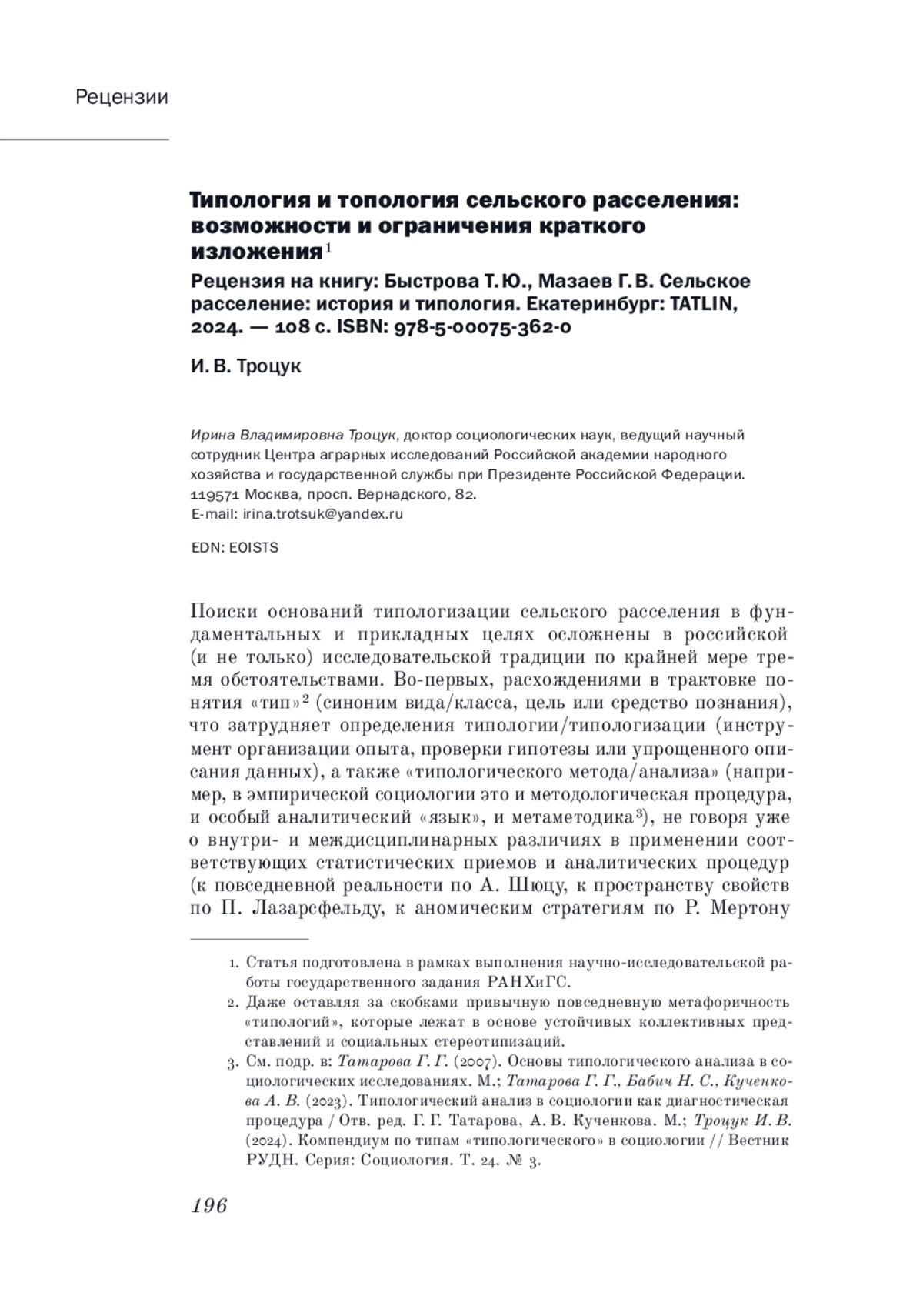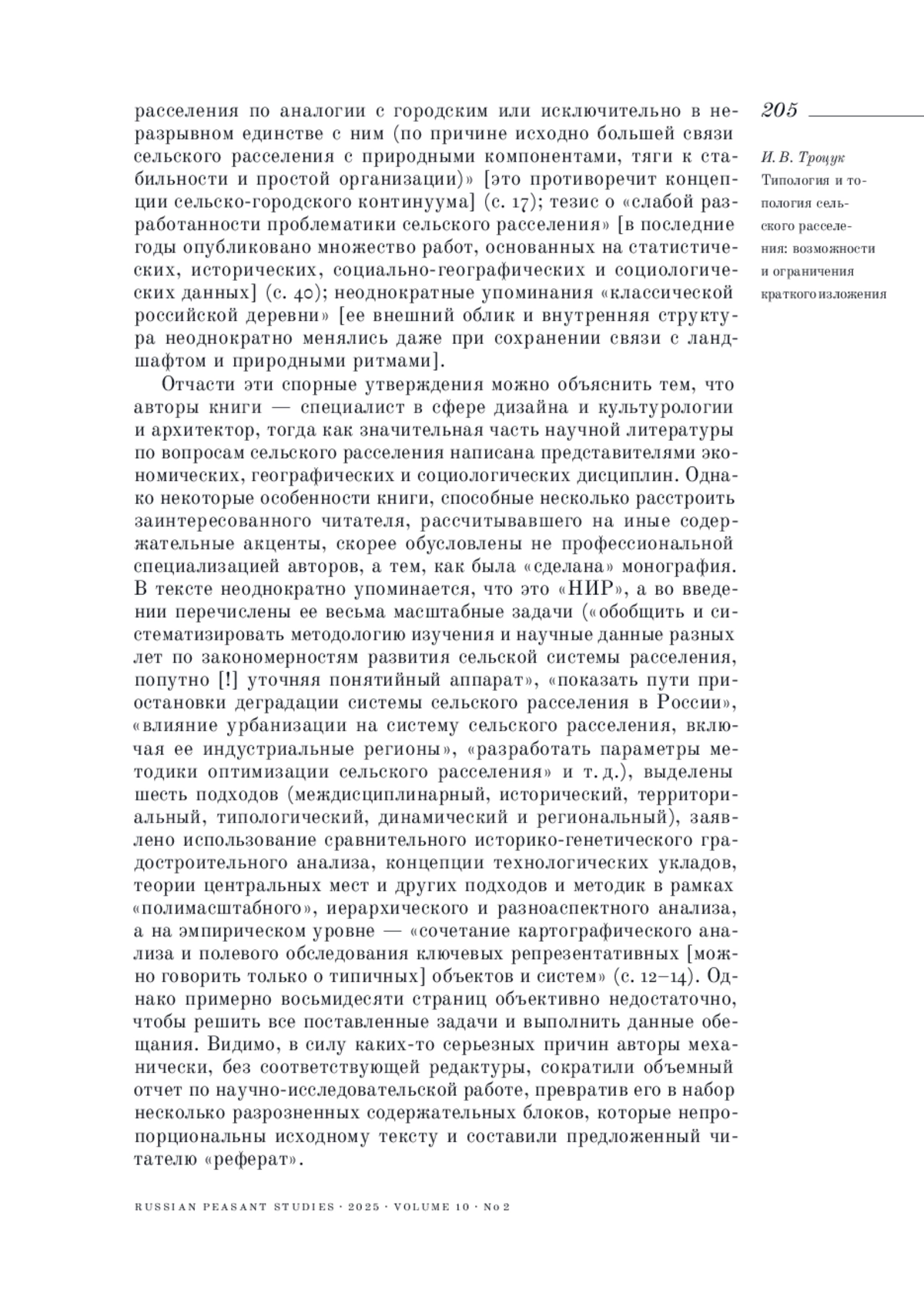 ТРОЦУК И. В. ТИПОЛОГИЯ И ТОПОЛОГИЯ СЕЛЬСКОГО РАССЕЛЕНИЯ: ВОЗМОЖНОСТИ И ОГРАНИЧЕНИЯ КРАТКОГО ИЗЛОЖЕНИЯ // КРЕСТЬЯНОВЕДЕНИЕ. 2025. Т. 10 № 2
