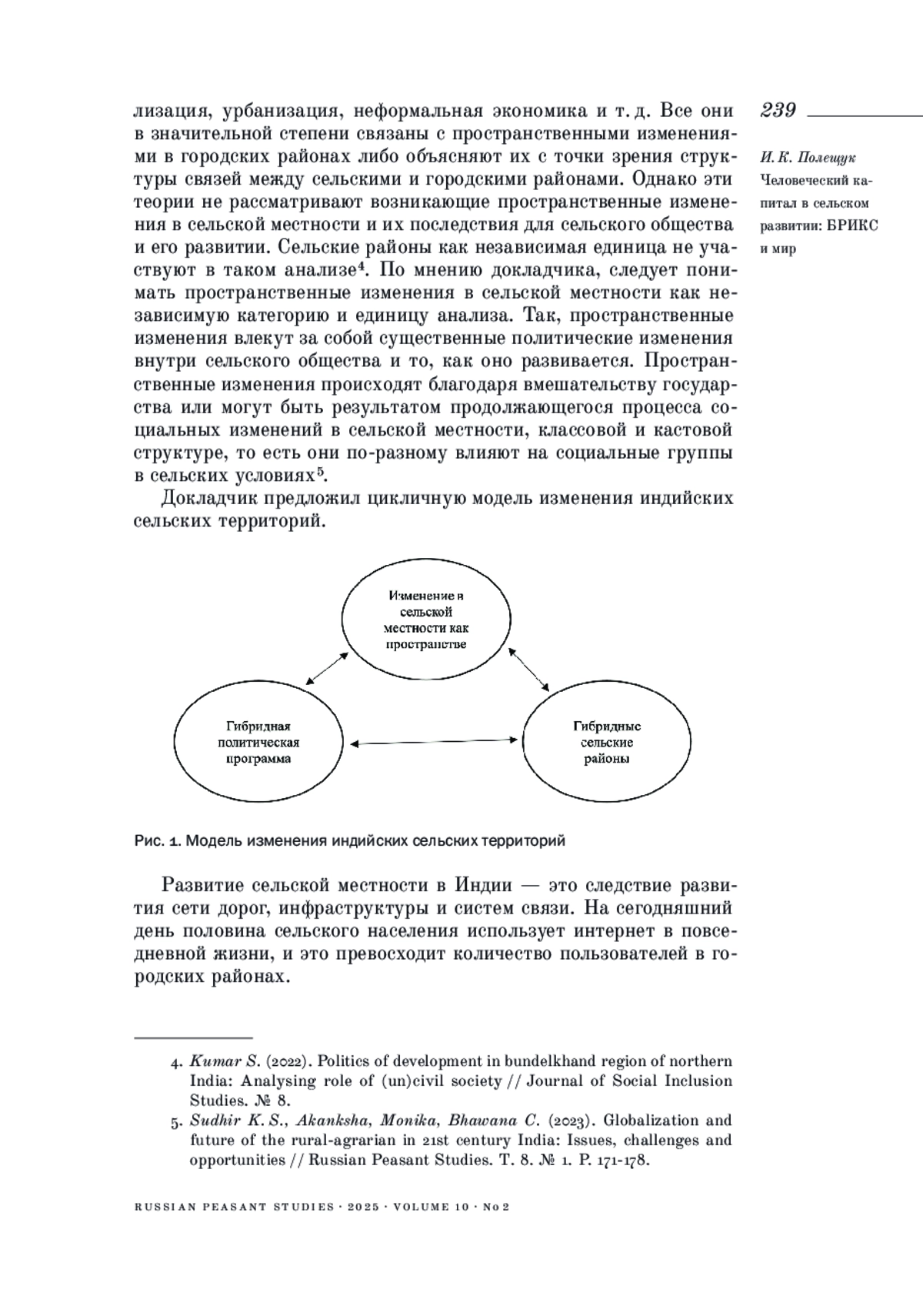 28. Sudhir K. S., Akanksha, Monika, Bhawana C. (2023). Globalization and future of the rural-agrarian in 21st century India: Issues, challenges and opportunities // Russian Peasant Studies. Т. 8. № 1. P. 171-178.
