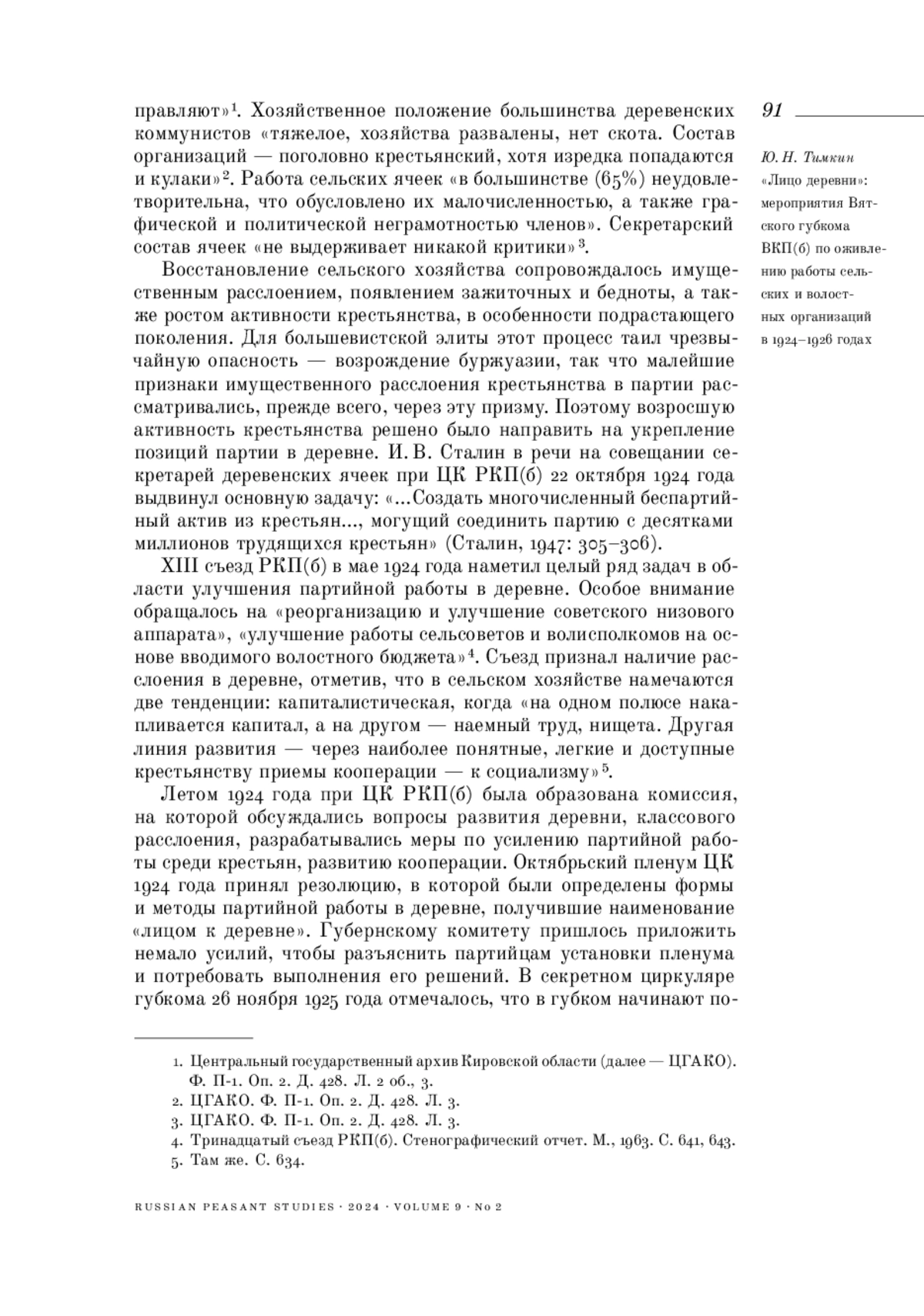 3. Венер М. (1993). Лицом к деревне: советская власть и крестьянский вопрос (1924-1925 гг.) // Отечественная история. № 5. С. 86-107.