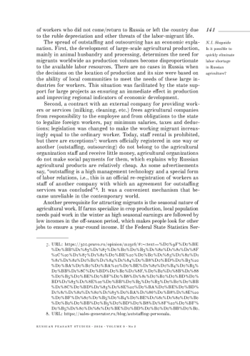 8. Potapova A.A. (2021). Approaches to meeting the need for seasonal agricultural workers with labor migrants under the covid-19 pandemic. URL: https://cyberleninka.ru/article/n/podhody-k-obespecheniyu-potrebnosti-v-sezonnyh-rabotnikah-selskogo-hozyaystva-za-schet-trudovyh-migrantov-v-usloviyah-covid-19?ysclid=luiwuavzc2371549101. (In Russian). EDN: EYTMFY