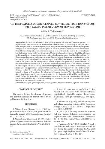 8. Gorbunova A. V. Nonlinear approximation of characteristics of a fork-join queueing system with Pareto service as a model of parallel structure of data processing / A. V. Gorbunova, A. V. Lebedev // Mathematics and Computers in Simulation. - 2023. - Vol. 214. - P. 409-428. EDN: USRKYX