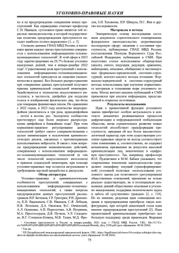 12. Скрипченко Н.Ю. Использование информационно-телекоммуникационных сетей в криминальных целях: нормативный учет и перспективы расширения уголовно-правового значения // Вестник РУДН. Серия Юридические науки. 2024. Т. 28. № 1. С. 196 - 214. EDN: QXGMAB