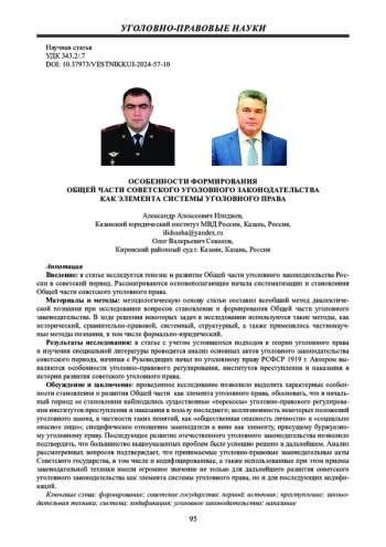 3. Илиджев А.А. Исторические аспекты формирования Общей части уголовного законодательства России // Институциональные основы уголовного права РФ: к 70-летнему юбилею профессора В.П. Коняхина: сборник материалов международной научно-практической конференции. Краснодар, 2024. С. 98 - 105. EDN: DKGWZZ