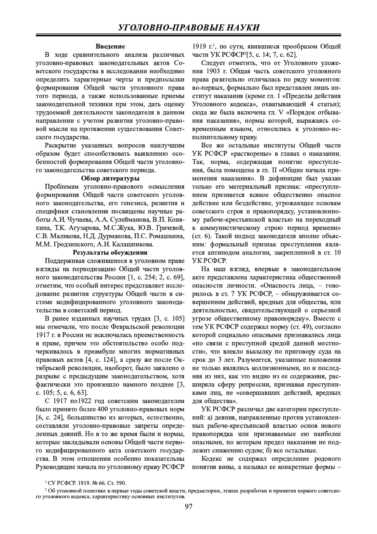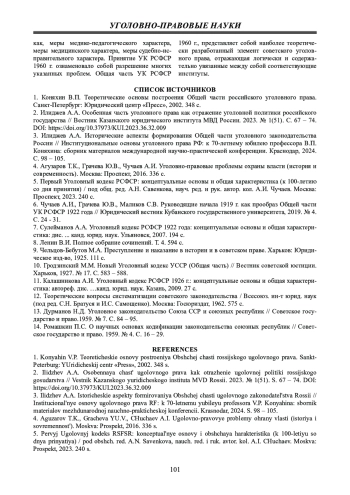 7. Сулейманов А.А. Уголовный кодекс РСФСР 1922 года: концептуальные основы и общая характеристика: дис.... канд. юрид. наук. Ульяновск, 2007. 194 с. EDN: NOYTRH