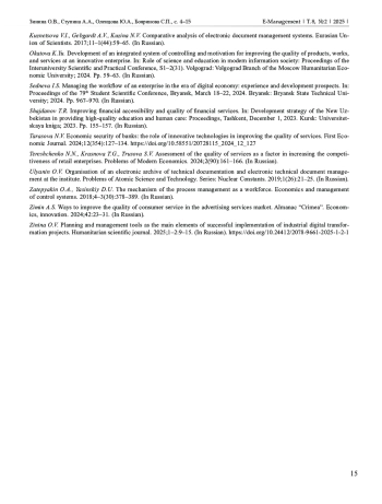 1. Затепякин О.А., Ясинский Д.Ю. Механизм процесса управления качеством рабочей силы. Экономика и менеджмент систем управления. 2018;4-3(30):378-389.