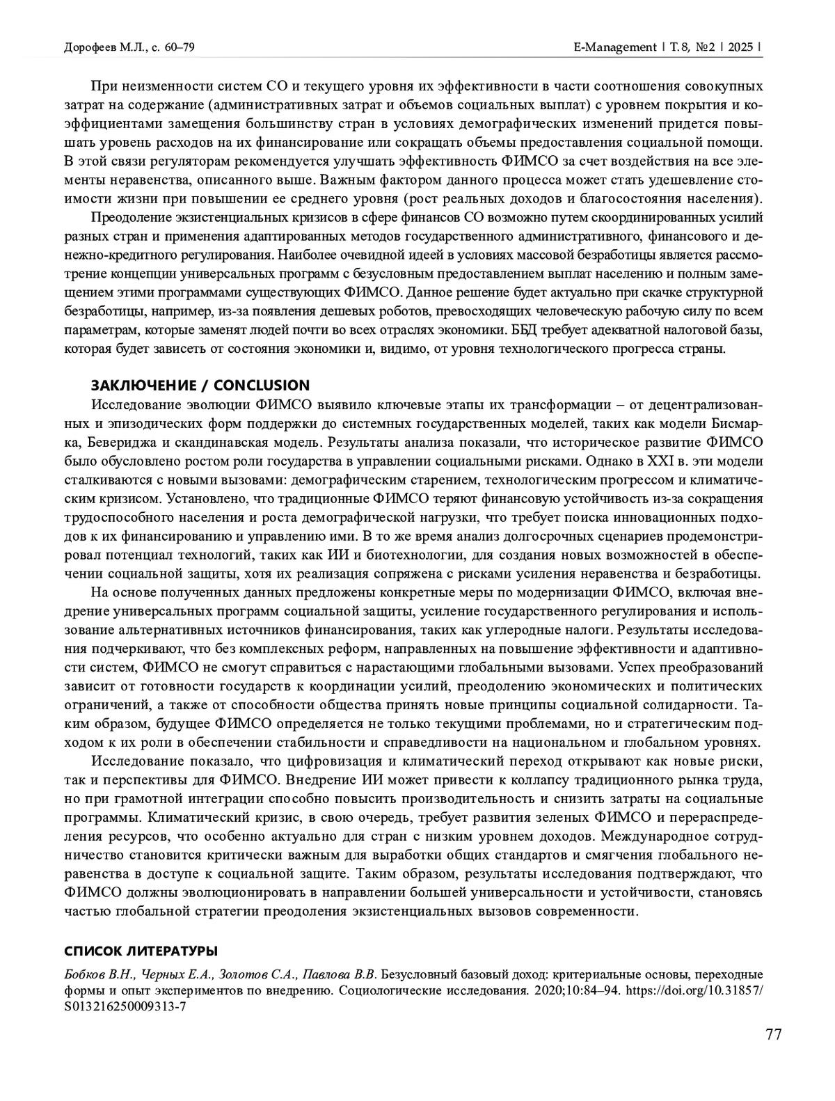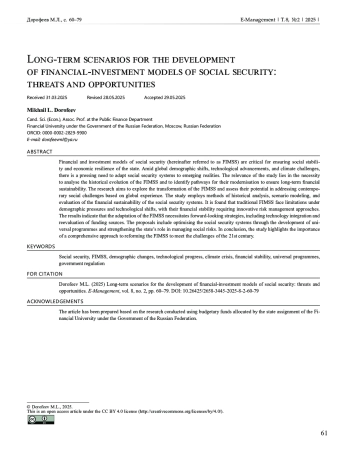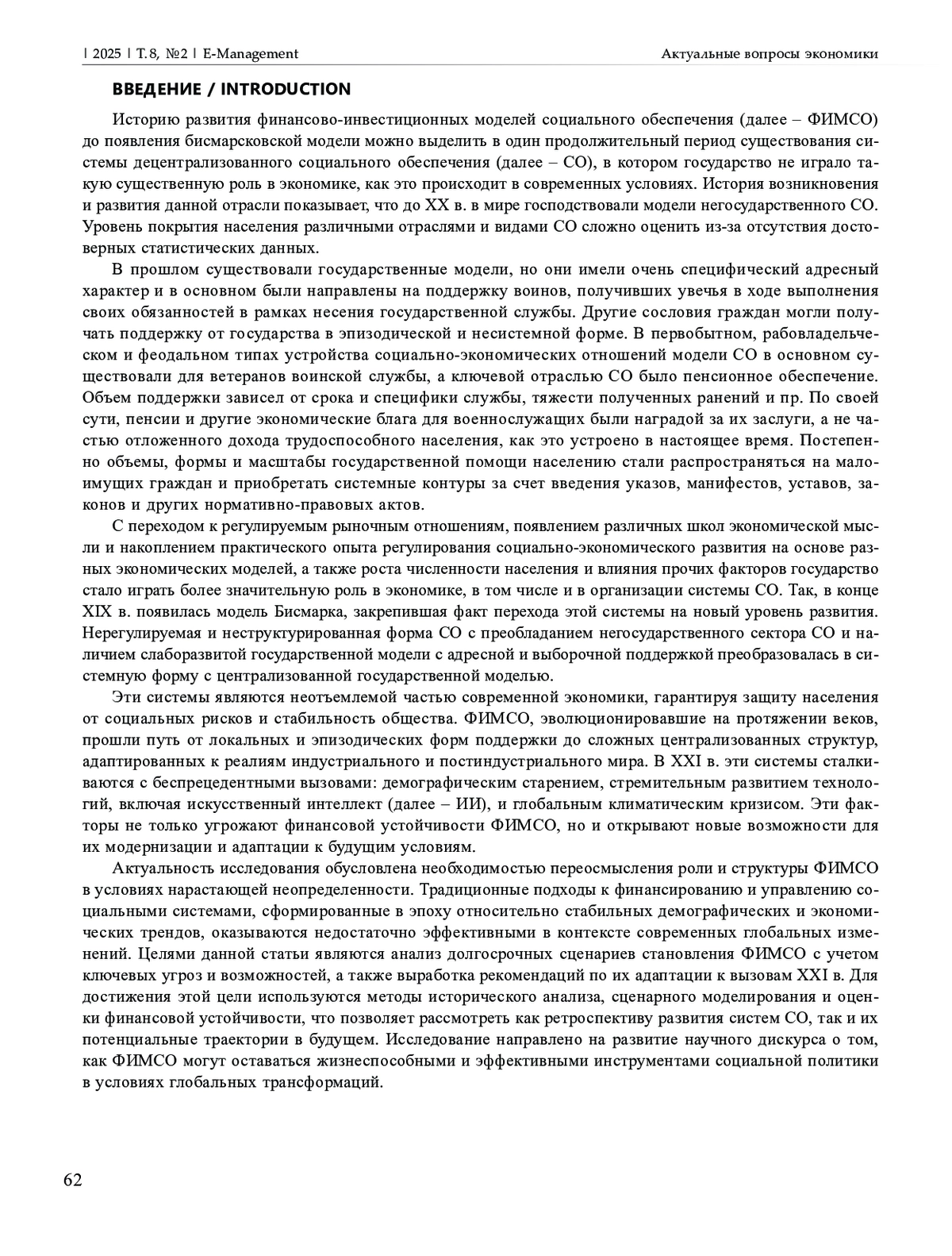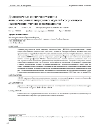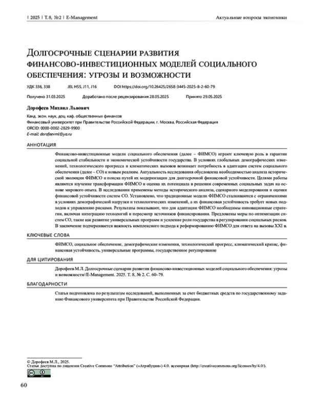 ДОРОФЕЕВ М. Л. ДОЛГОСРОЧНЫЕ СЦЕНАРИИ РАЗВИТИЯ ФИНАНСОВО-ИНВЕСТИЦИОННЫХ МОДЕЛЕЙ СОЦИАЛЬНОГО ОБЕСПЕЧЕНИЯ: УГРОЗЫ И ВОЗМОЖНОСТИ // E-MANAGEMENT. 2025. Т. 8 № 2