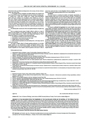 В статье рассматривается проблема определения иерархии кинодискурса в рамках системы проката кинофильма на примере французского кинодискурса. В данном случае кинодискурс понимается нами как особое семиотическое пространство, обладающее этноспецифическими и прагматическими особенностями репрезентации. Материалом исследования послужили французские кинофильмы 1954-2024 гг, их малоформатные тексты (кинозаголовок, синопсис, слоган, постер, трейлер) и полидискурсивные единицы кино- и других типов дискурса. Автором выявлены этапы реализации системы проката кинофильма: предпрокатный, прокатный и прокатный, каждый из которых обладает свойственной ему совокупностью элементов. Система проката кинофильма отличается линейной иерархией, где на основании критерия появления в прокате элементов каждого из этапов первый уровень отведен предпрокатному этапу, второй - прокатному этапу и третий - постпрокатному этапу. Внутри каждого из уровней иерархии выделены подуровни, состоящие из элементов конкретного этапа согласно критерию функционирования в них прецедентных феноменов кинофильма.