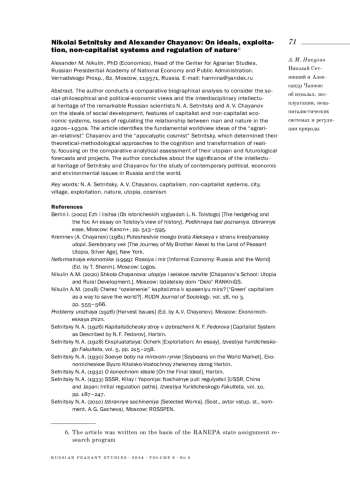 4. Никулин А. М. (2020). Школа Чаянова: утопия и сельское развитие. М.: Издательский дом “Дело” РАНХиГС. EDN: ISOODO