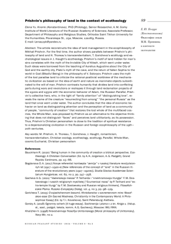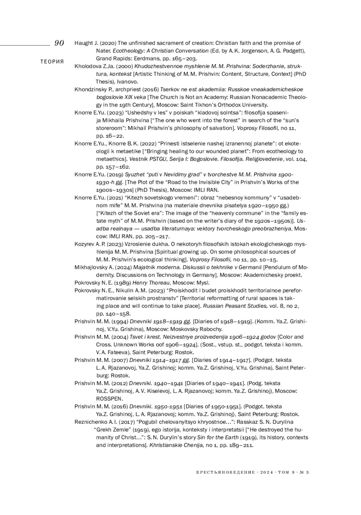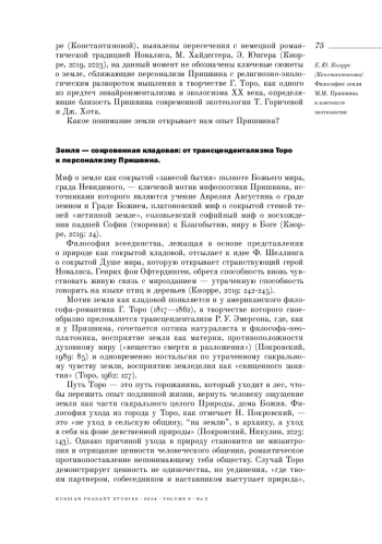КНОРРЕ Е. Ю. ФИЛОСОФИЯ ЗЕМЛИ М. М. ПРИШВИНА В КОНТЕКСТЕ ЭКОТЕОЛОГИИ // КРЕСТЬЯНОВЕДЕНИЕ. 2024. Т. 9 № 3