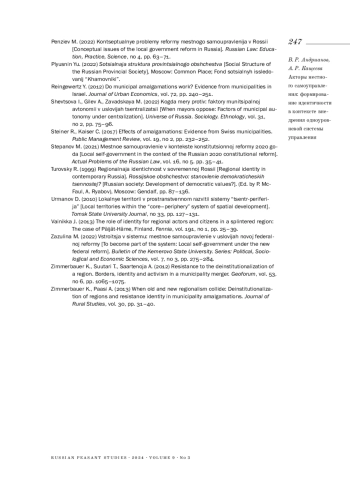 Статья: АКТОРЫ МЕСТНОГО САМОУПРАВЛЕНИЯ: ФОРМИРОВАНИЕ ИДЕНТИЧНОСТИ В КОНТЕКСТЕ ВНЕДРЕНИЯ ОДНОУРОВНЕВОЙ СИСТЕМЫ УПРАВЛЕНИЯ (2024)