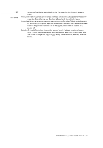 10. Лапердин В. Б. (2019). Аграрное освоение северных районов Западно-Сибирского края во второй половине 1930-х годов // Гуманитарные науки в Сибири. № 1. С. 11-16.