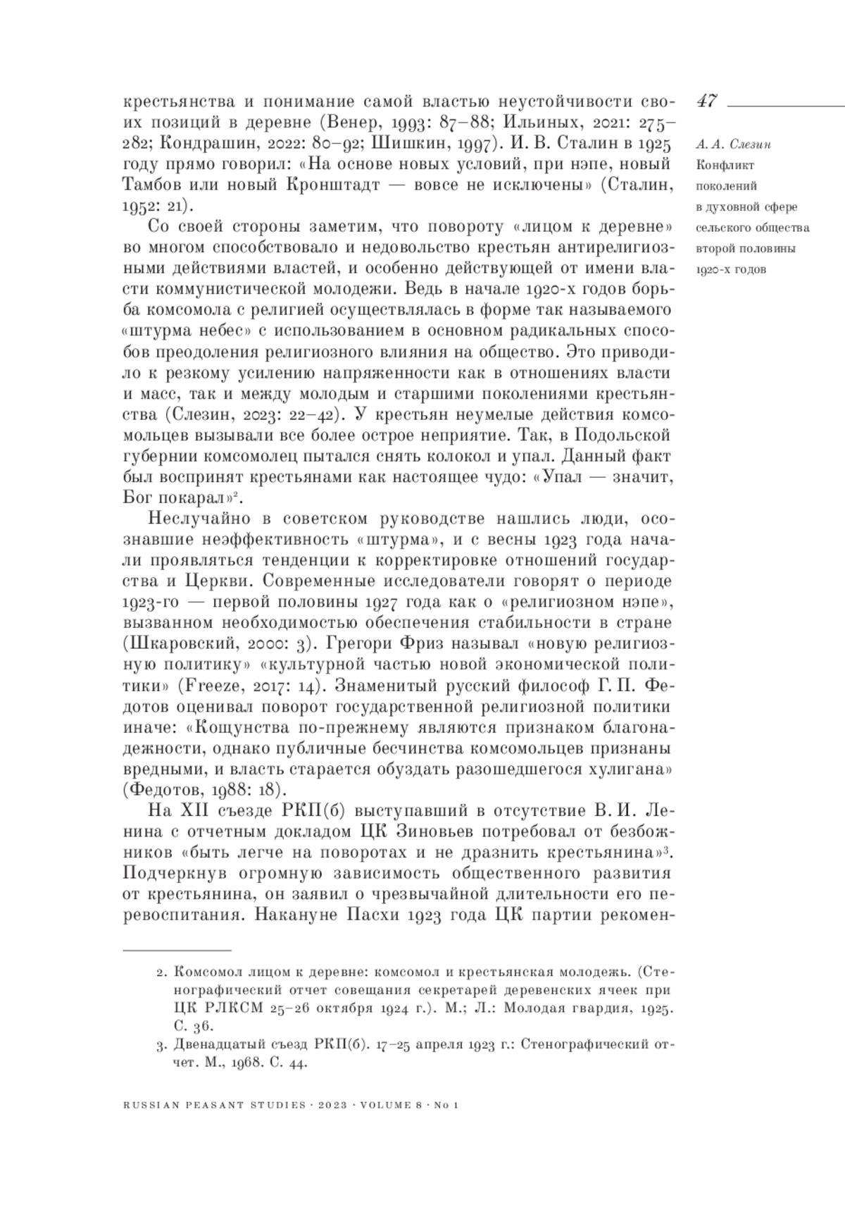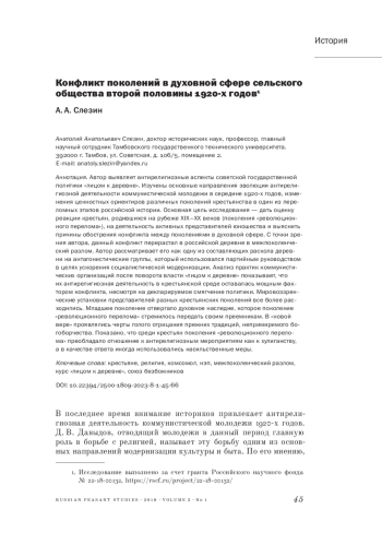32. Слезин А. А. (2023). Противостояние крестьян и комсомольцев в духовной сфере русской деревни начала 1920-х годов // Аграрная история. № 13. С. 22-42. EDN: VSLZJI
