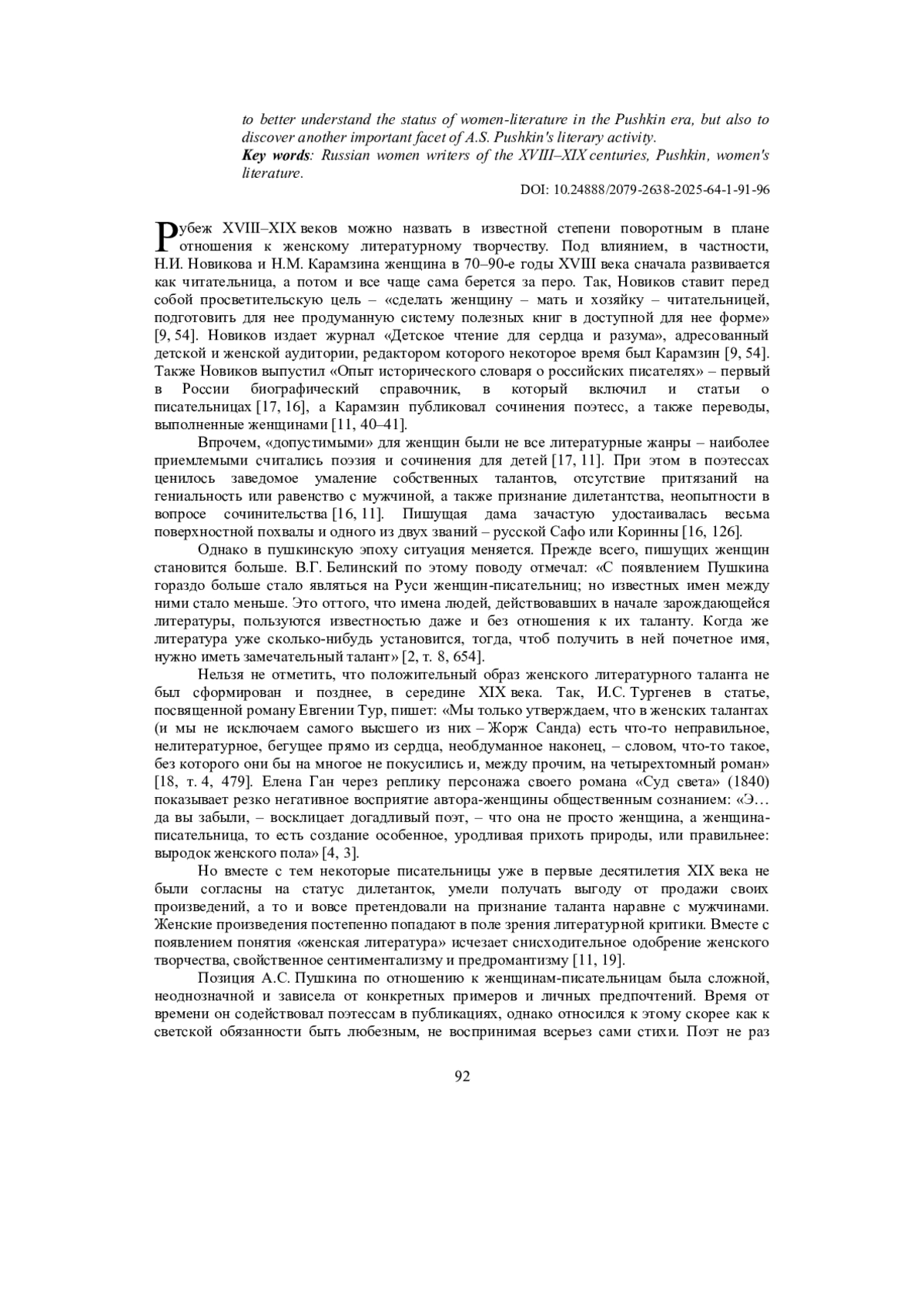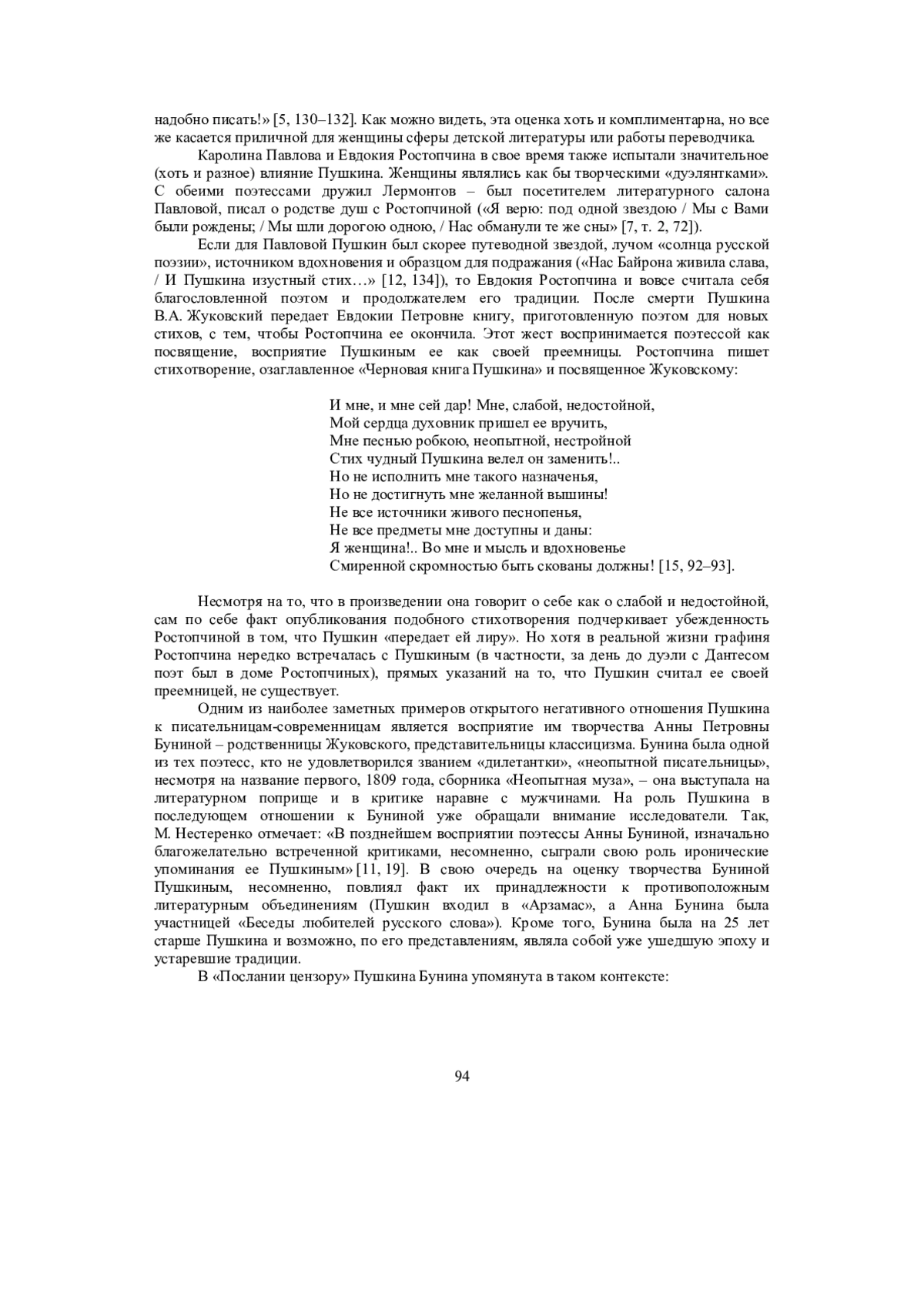8. Летина Н.Н. Гендерно детерминированный пушкинский дискурс женского творчества в России XIX в. // Ярославский педагогический вестник, 2015. № 4. URL: https://cyberleninka.ru/article/n/genderno-determinirovannyy-pushkinskiy-diskurs-zhenskogo-tvorchestva-v-rossii-xix-v/viewer (дата обращения: 29.10.2024). EDN: UXMHQV