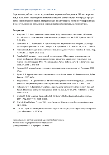 8. Fedulenkova T. N. Terminology vs phraseology: meaning transfer in business terms // Research Result. Theoretical and Applied Linguistics. 2022. No. 8(4). P. 41-56. 10.18413/2313-8912- 2022-8-4-0-4. DOI: 10.18413/2313-8912-2022-8-4-0-4 EDN: JCMNEP