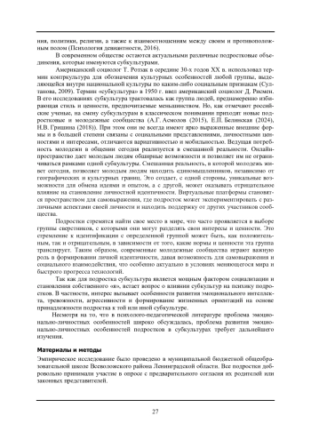 Прояснение эмоционально-личностных особенностей подросткового возраста является одной из самых интересных областей современной психологии. Ключевым периодом для формирования идентичности играет подростковый возраст (Хухлаева 2005). Его возрастные особенности способствуют становлению эмоционального интеллекта, входящего в структуру социального интеллекта, в рамках ведущей деятельности и социальной ситуации развития подростка (Психология девиантности, 2016). Именно в этом возрасте одной из ведущих потребностей становится общение со сверстниками, которое формирует определенный круг интересов и ценностей.