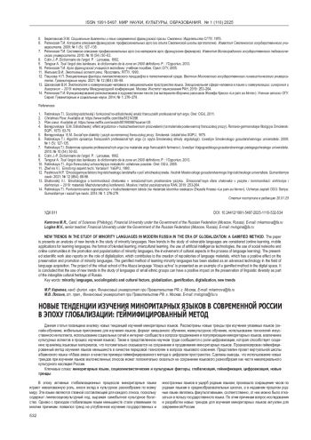 Ключевые фразы: миноритарные языки, социолингвистические и культурные факторы, глобализация, геймификация, цифровизация, НОВЫЕ ТРЕНДЫ