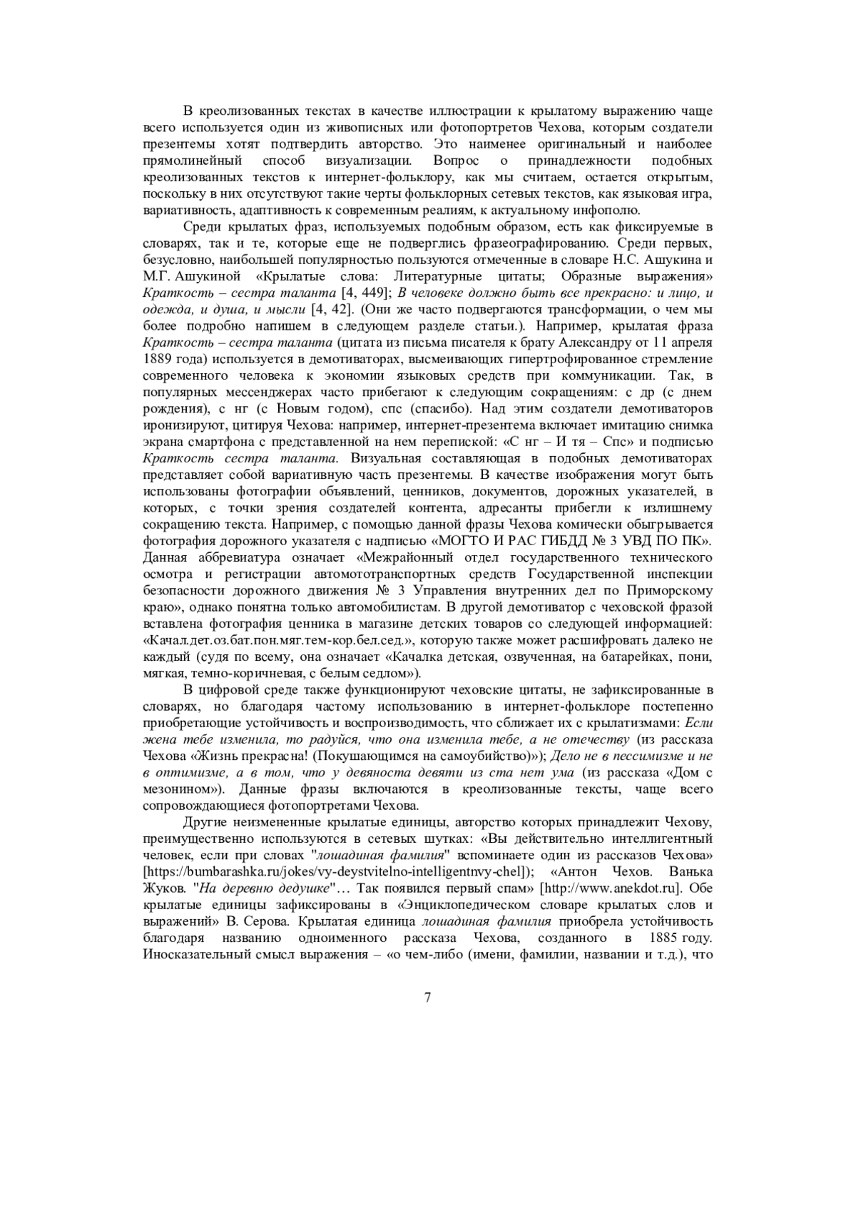 1. Абрамова В.И., Архангельская Ю.В. Пушкинские прецедентные высказывания в фольклоре Рунета // Филоlogos. 2023. № 4(59). С. 5-14.