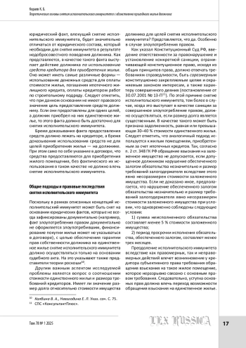 4. Савельев Д. Б. Имущественный иммунитет на единственное жилое помещение гражданина: обеспечение баланса прав кредиторов и должников // Журнал российского права. 2014. № 11. С. 69-78.