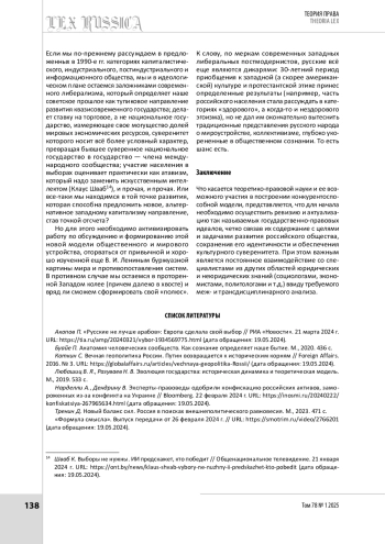 КИРДЯШОВА Е. В. ГОСУДАРСТВЕННО-ПРАВОВЫЕ ИДЕАЛЫ И МНОГОПОЛЯРНЫЙ МИР // LEX RUSSICA (РУССКИЙ ЗАКОН). 2025. ТОМ 78, № 1