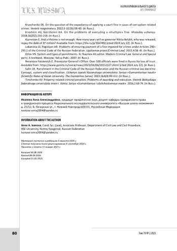 11. Тимченко А. В. Уголовные наказания имущественного характера: проблемы назначения и исполнения // Вестник Балтийского федерального университета имени И. Канта. Серия «Гуманитарные и общественные науки». 2016. № 2. С. 69-74.