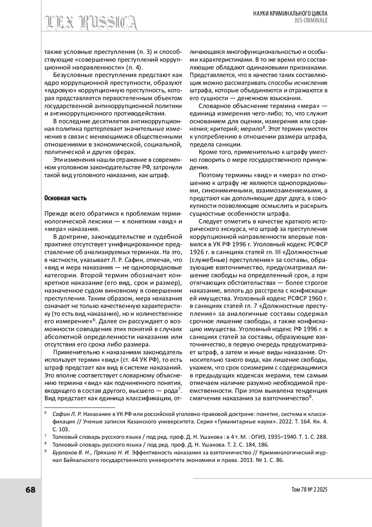 10. Сафин Л. Р. Наказание в УК РФ и российской уголовно-правовой доктрине: понятие, система и классификация // Ученые записки Казанского университета. Серия «Гуманитарные науки». 2022. Т. 164. Кн. 4. С. 99-112.
