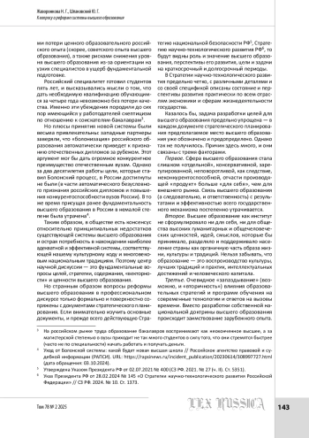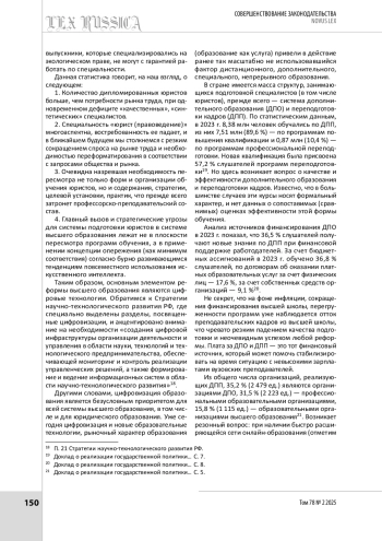 Ключевые фразы: высшее образование, Болонский процесс, юридическое образование, документы стратегического планирования, цифровизация, стратегия научно-технологического развития, глобализация, искусственной интеллект, экология, дополнительное образование