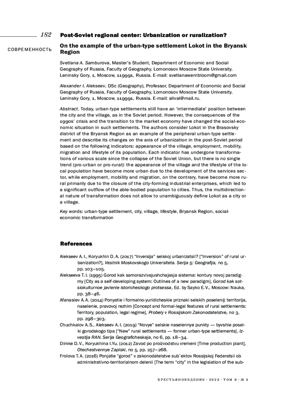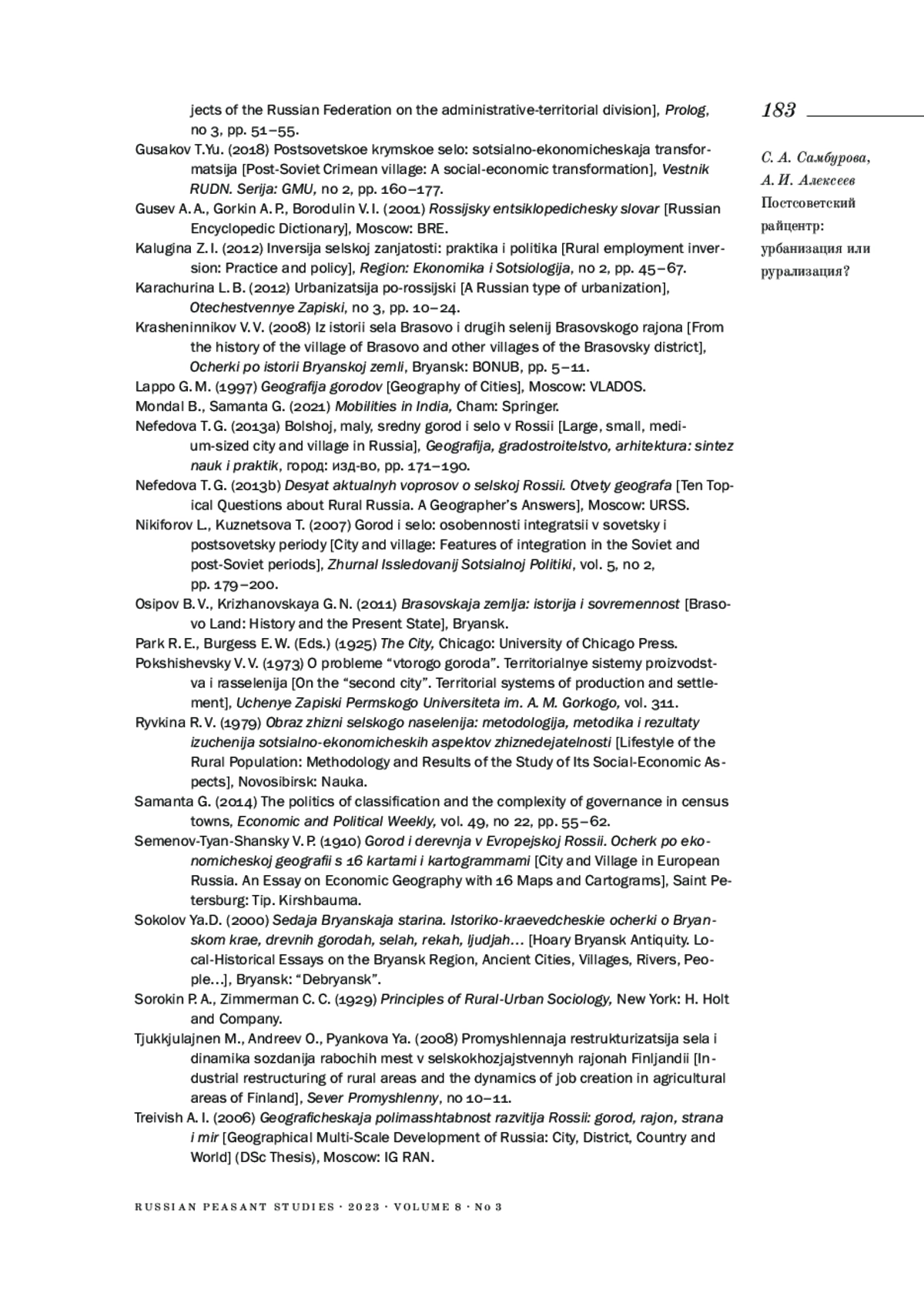 1. Алексеев А. И., Корюхин Д. А. (2017). “Инверсия” сельской урбанизации? // Вестник Московского университета. Серия 5. География. №. 5. С. 103-105. EDN: ZRFAKH