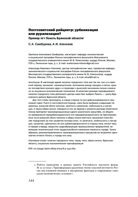 24. Чучкалов А. С., Алексеев А. И. (2019). “Новые” сельские населенные пункты - бывшие поселки городского типа // Известия Российской академии наук. Серия географическая. № 6. С. 18-34. EDN: YBSRZO
